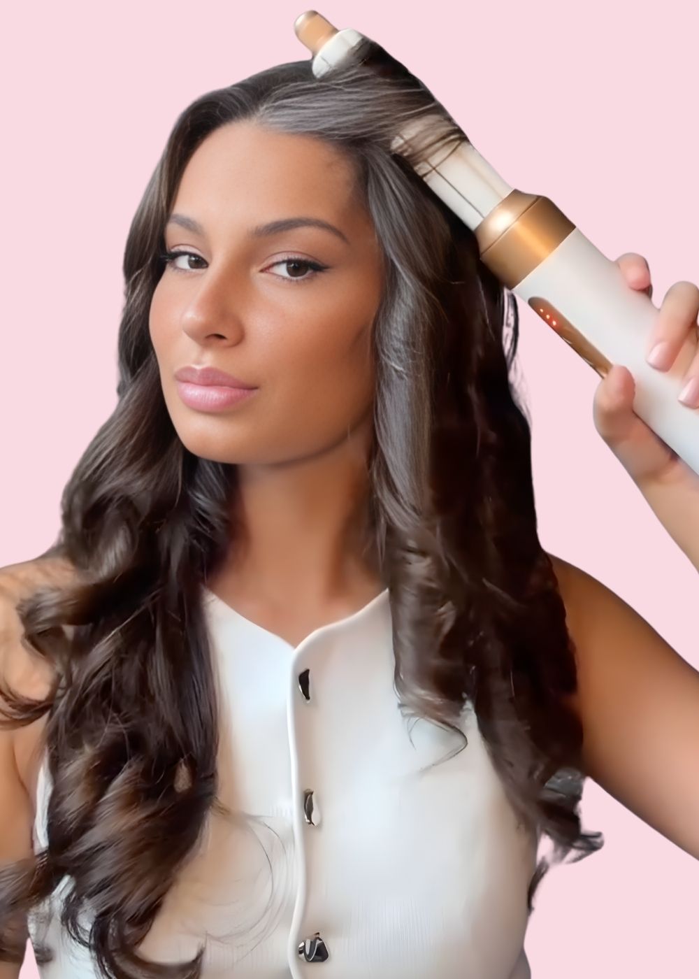 Une puissance de flux améliorée pour boucler ou onduler vos cheveux encore plus facilement et rapidement. Vos cheveux sont enroulés autour du boucleur pour une coiffure digne d'un salon.
